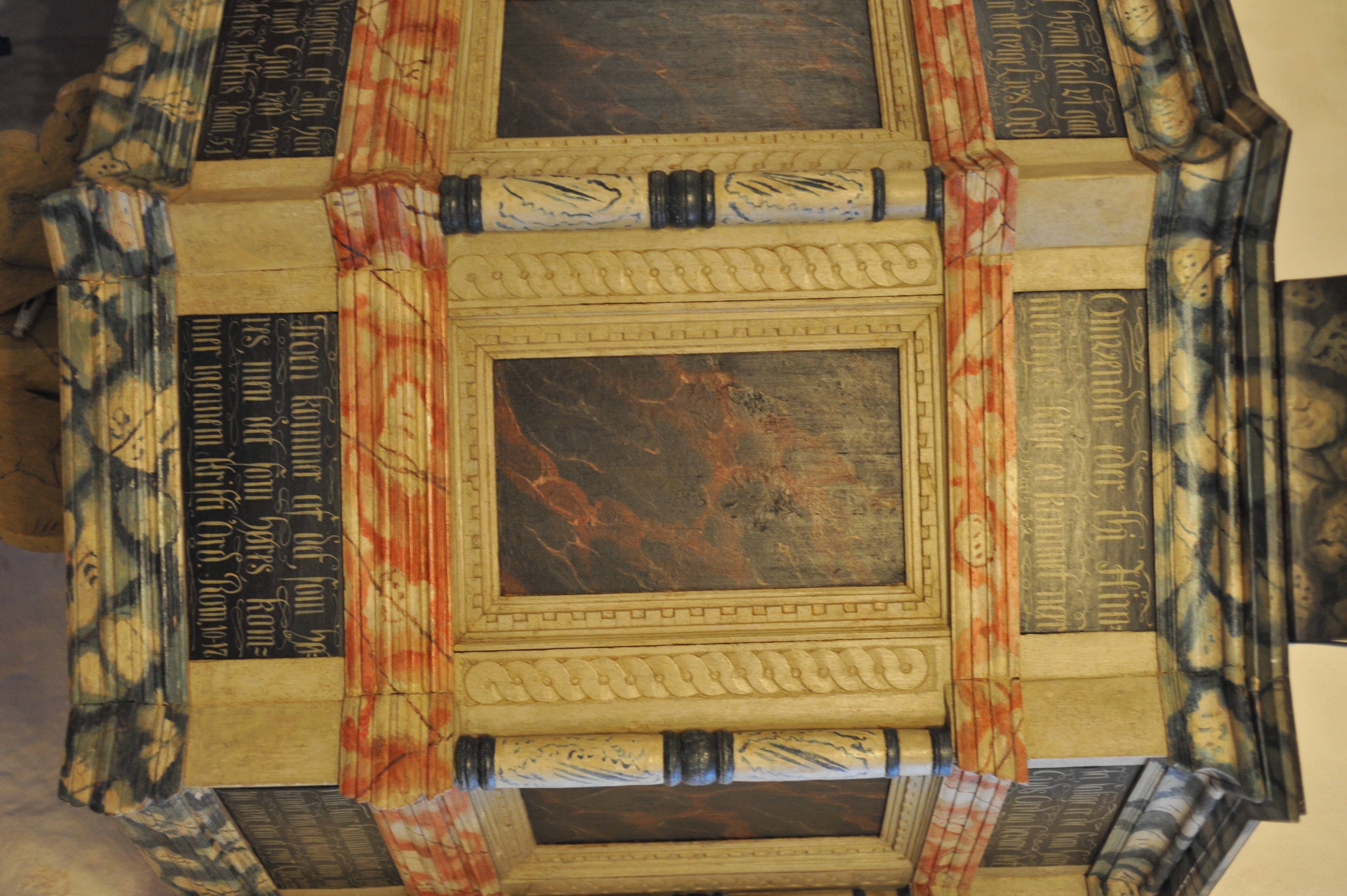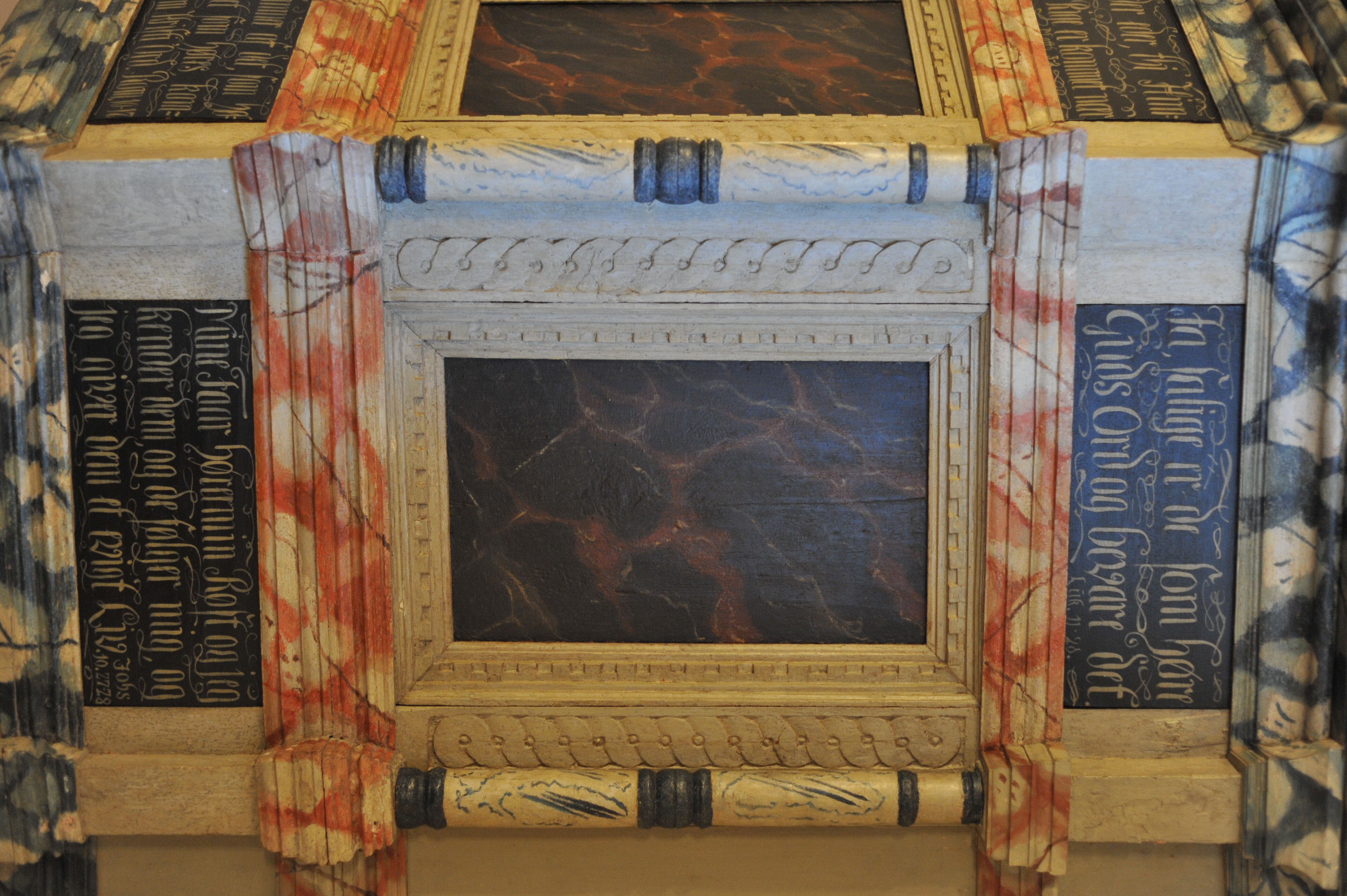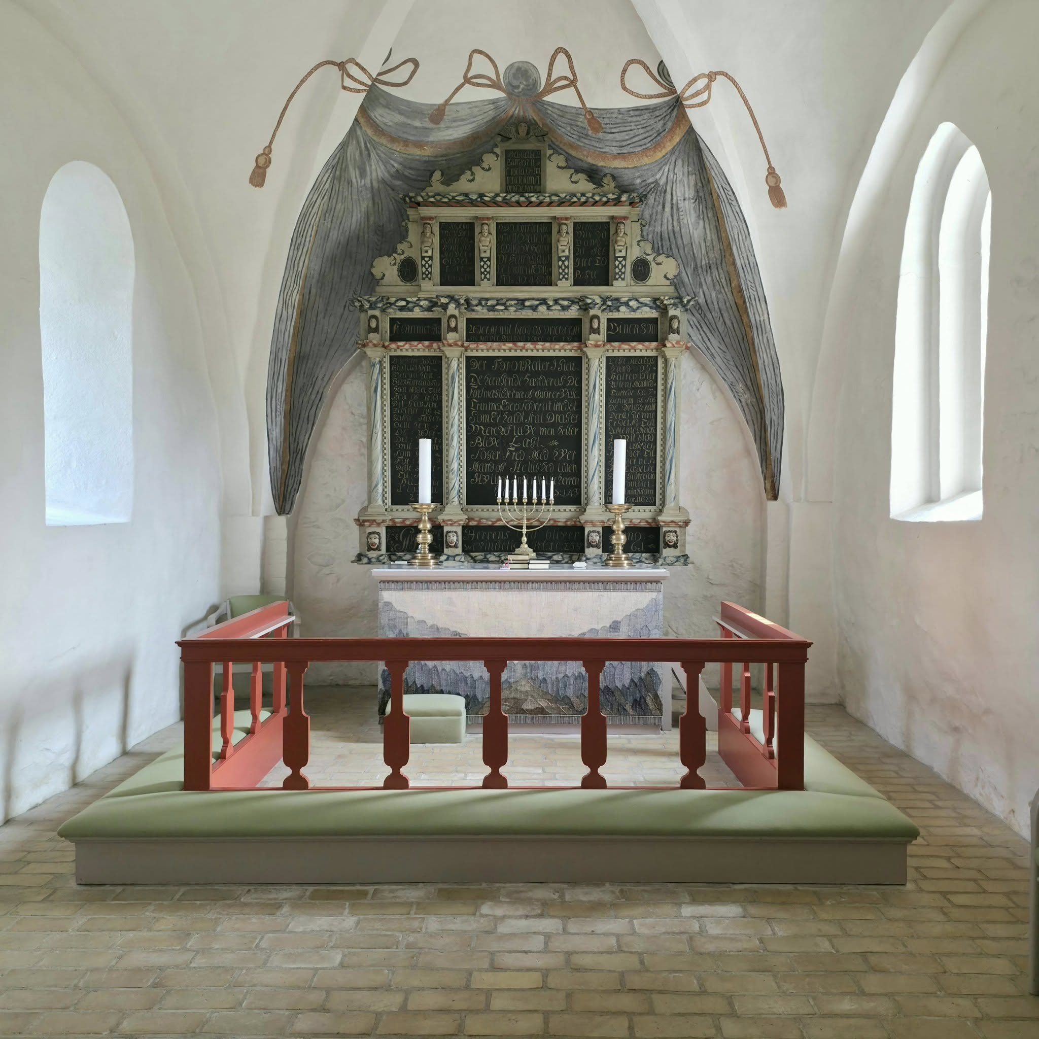 Under en restaurering i 1980’erne blev der fundet rester af et kalkmaleri over altertavlen forestillende en baldakin. Kalkmaleriet fra rokokoperioden er malet i 1761. Det sidder, så det efterligner et rigtigt draperi, der bliver taget til side bag altertavlen. Folk fra Nationalmuseet førte billedet tilbage til dets oprindelige udseende.