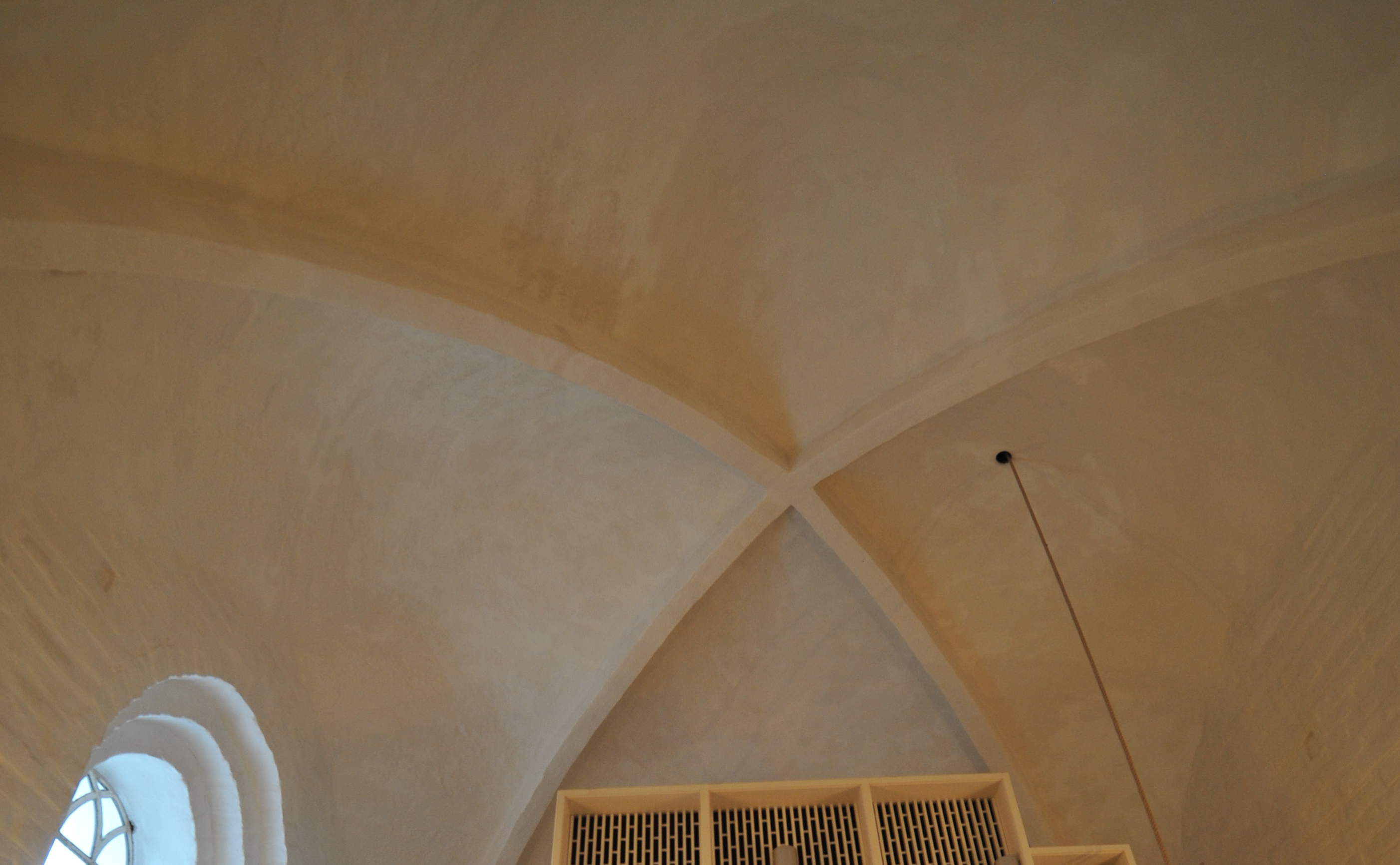 I tårnets underrum og i koret er det oprindelige loft blevet erstattet af krydshvælv