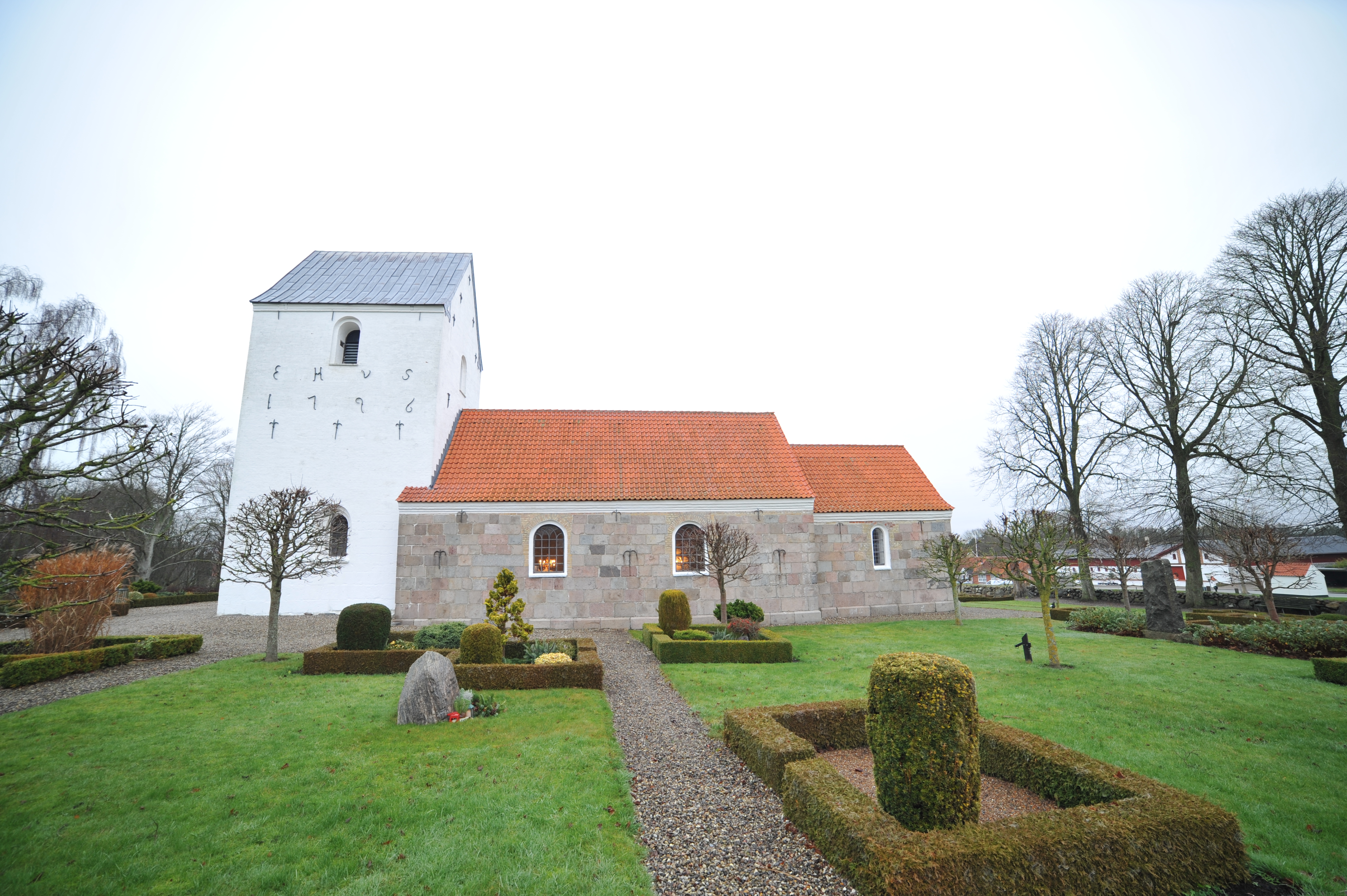Kirkens ældste genstand er en romansk døbefont af granit, der står i skibet foran korbuen. Dens kumme har glatte sider, profilhugning langs randen og pyramidefod. Den formodes at være jævnaldrende med kirken. Det gælder også alterbordet, som dog er blevet ombygget.