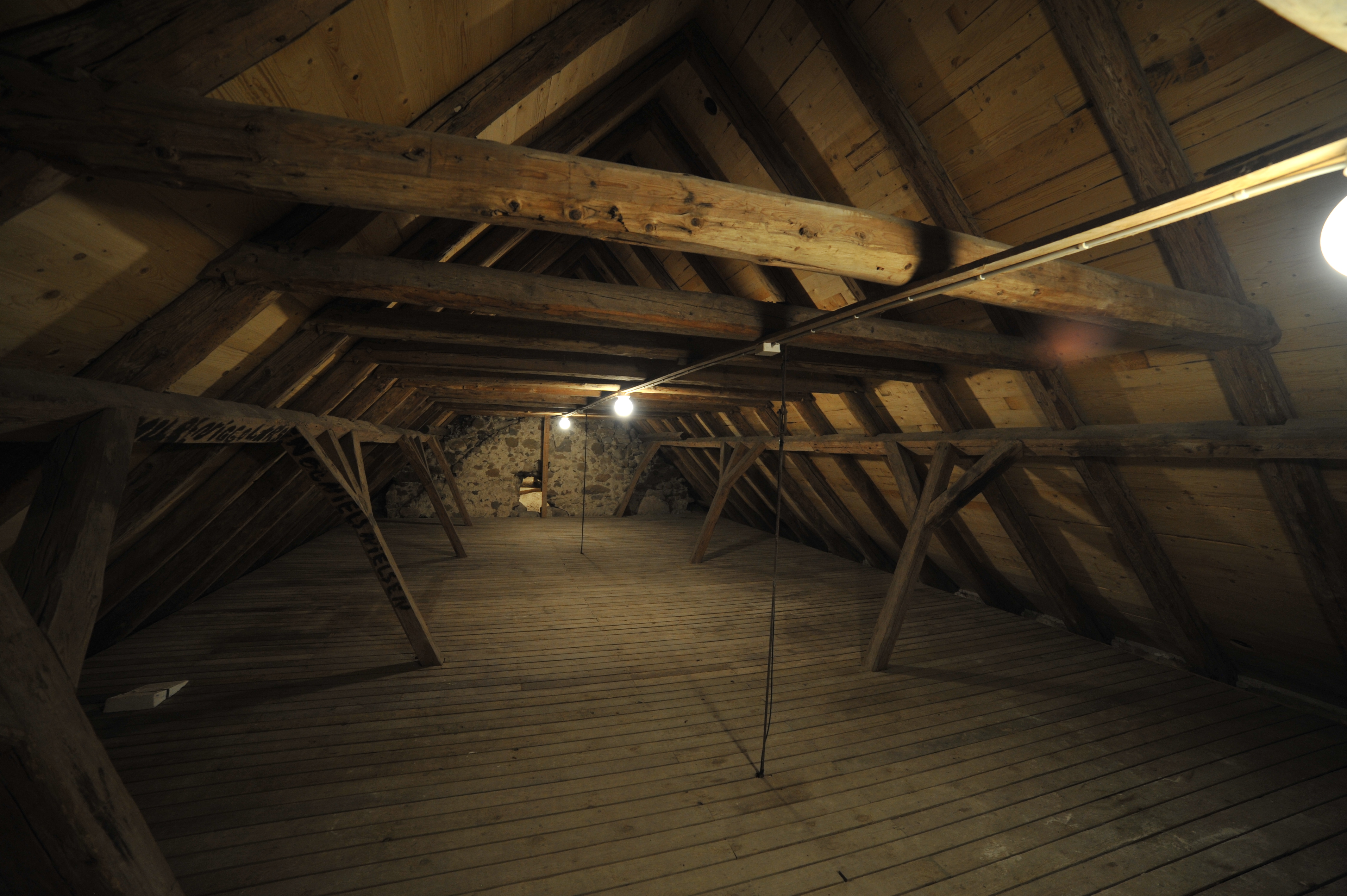 Rebet til at ringe med den gamle klokke, hænger stadig ned ved siden af orglet i tårnrummet.